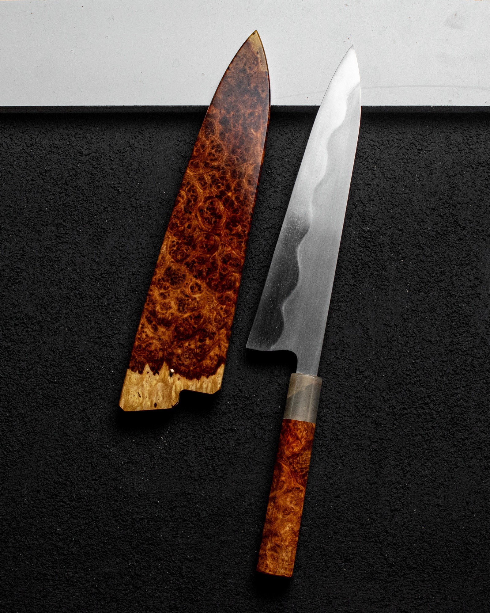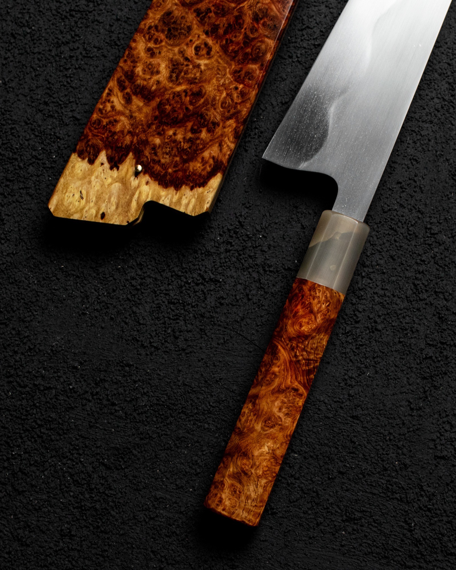 Keskin Gyuto 240mm, Amboyna Burl Dress w/ Blonde Horn #002