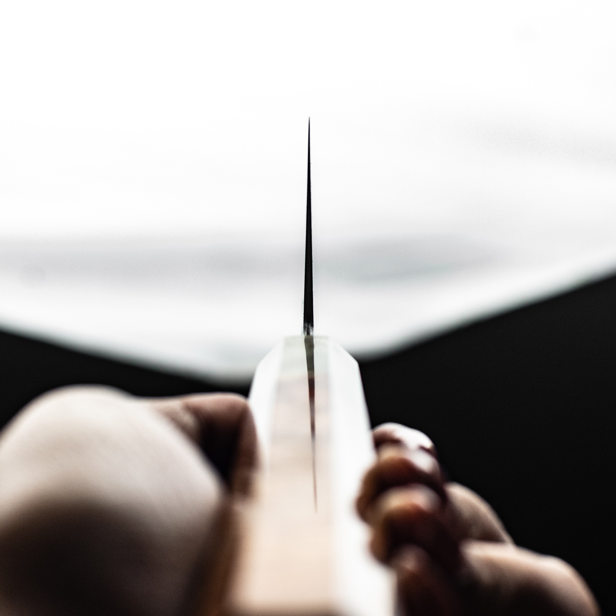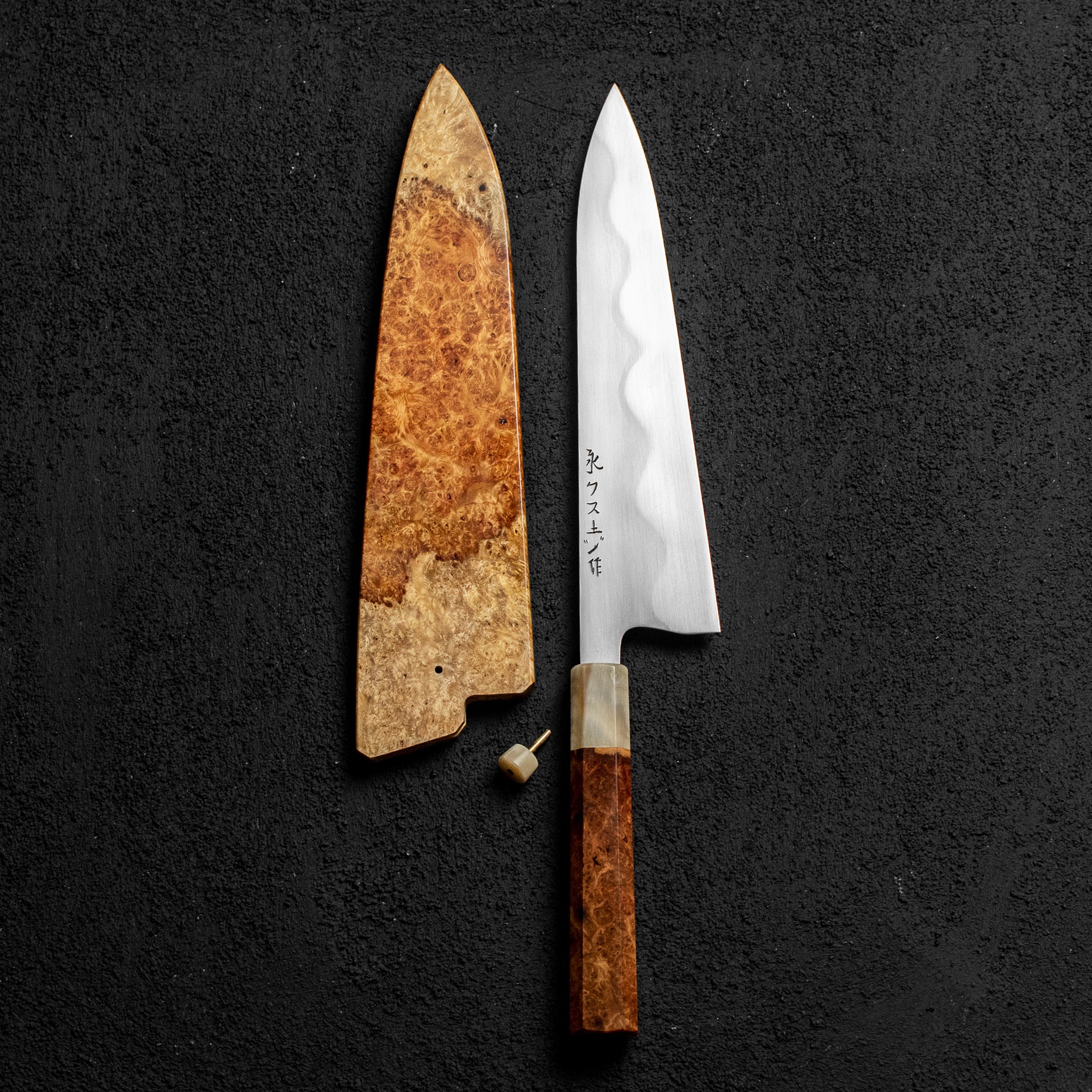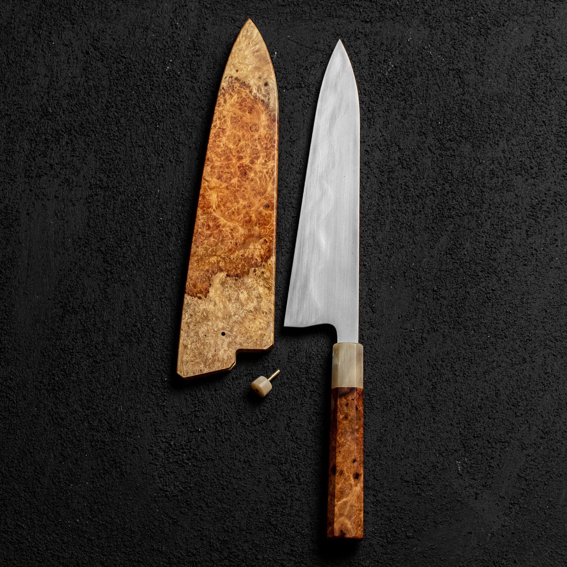 Keskin Gyuto 240mm, Amboyna Burl Dress w/ Blonde Horn #003