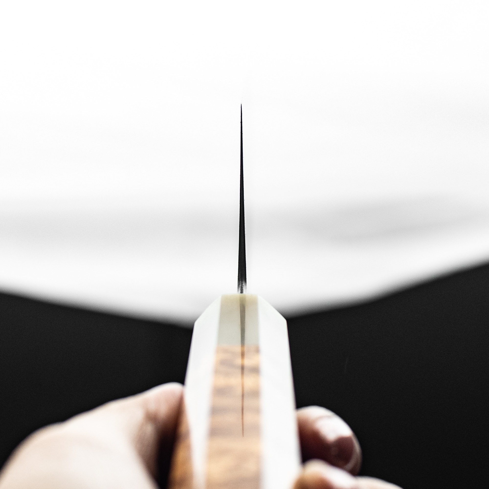 Keskin Gyuto 210mm, Amboyna Burl Dress w/ Blonde Horn #006