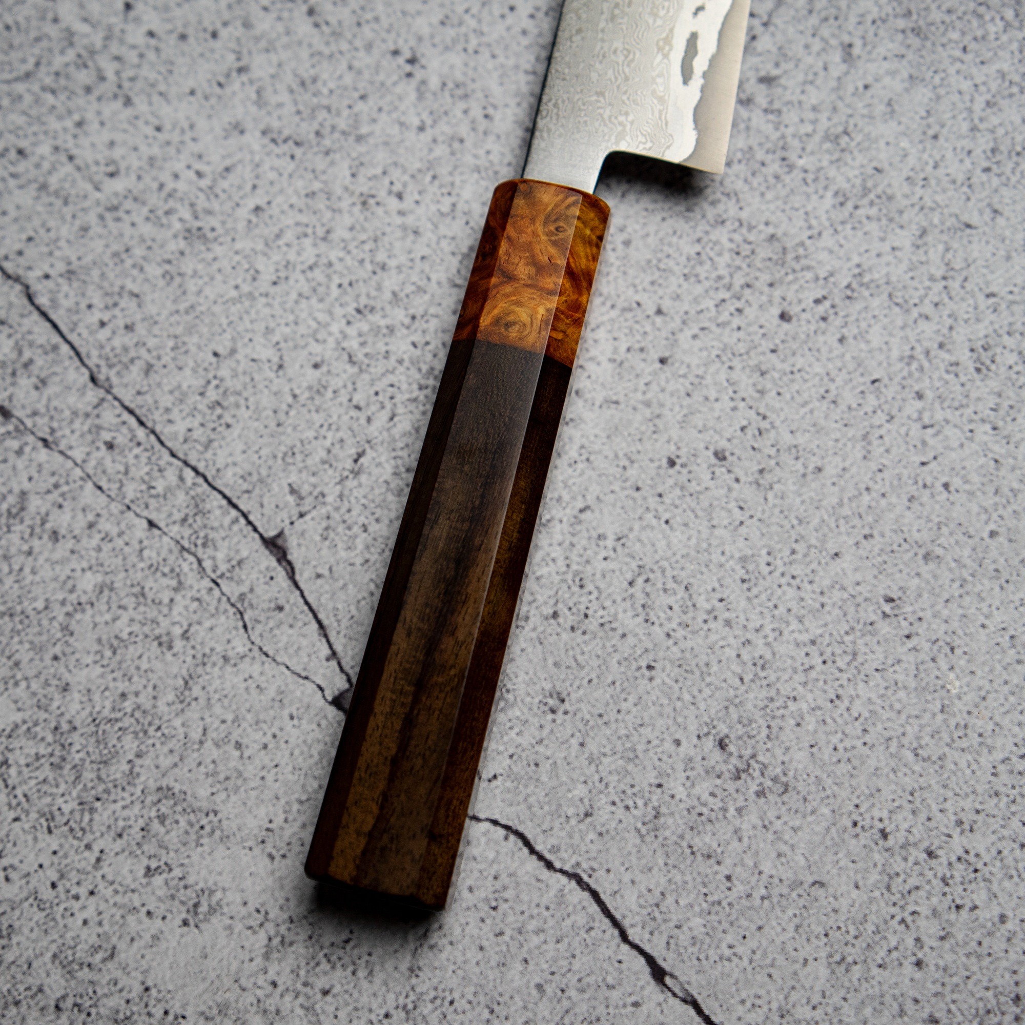 Rosewood + Amboyna Burl Handle